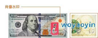 将钞票对着光源,然后在肖像右侧的空白处寻找本杰明·富兰克林的黯淡图像。从钞票两面均可看到该图像。