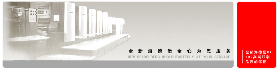 我们的印刷设备:海德堡CX102对开四色,海德堡M0630四开四色,日本小森对开四色,海德堡对开单色,海德堡CTP出版机。